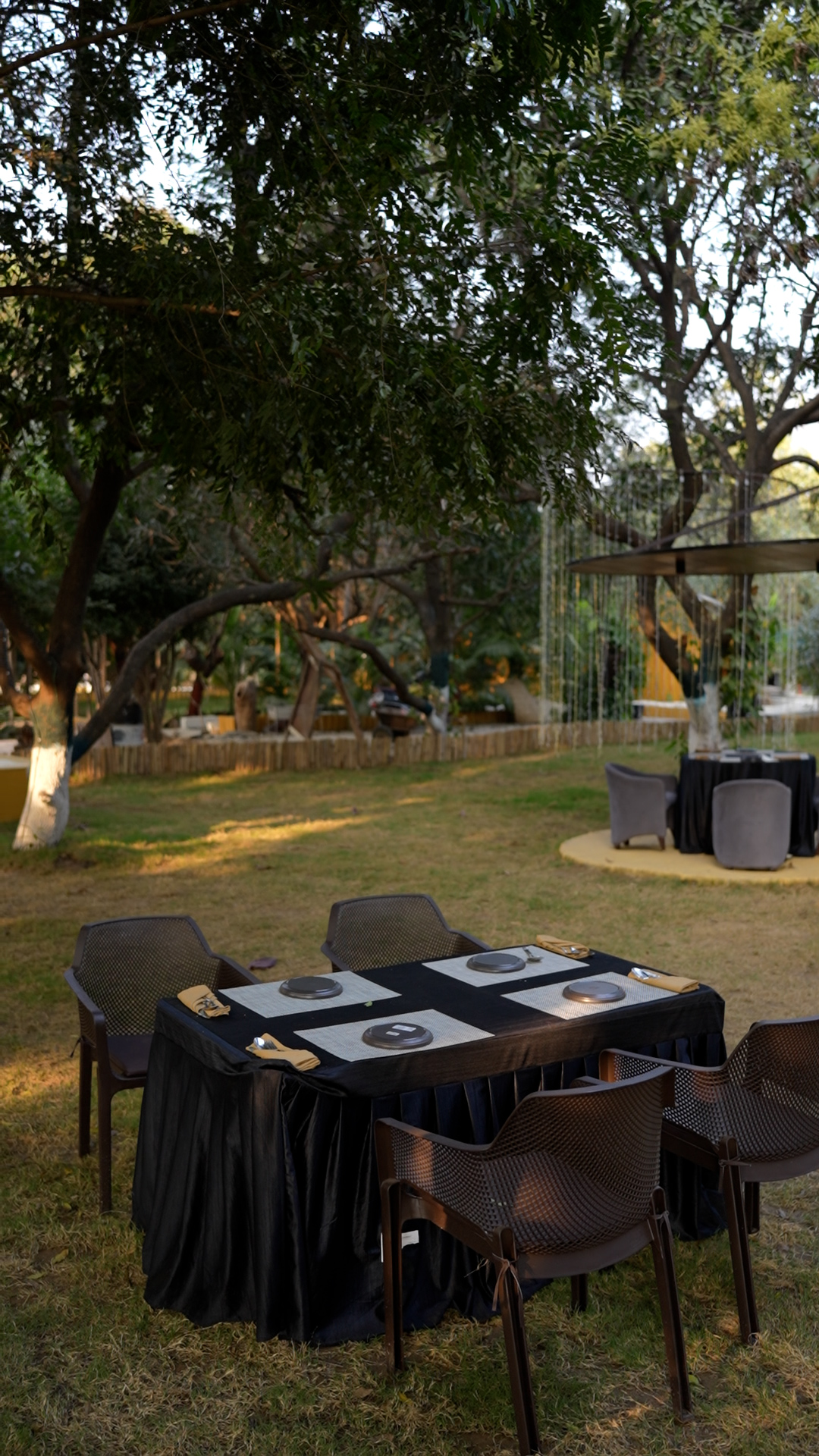 Our largest open-air venue, surrounded by ancient mango trees. A sprawling green carpet perfect for the main wedding ceremony and grand reception beneath the stars.